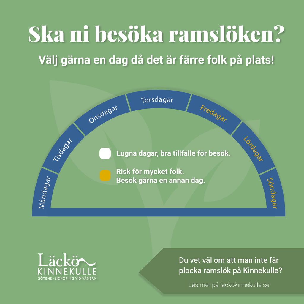 Med hänsyn till Kinnekulles känsliga natur vill vi uppmana dig till att besöka Ramslöken under någon av de lugnare dagarna - gärna en vardag, tidig morgon eller sent på eftermiddagen.