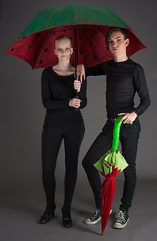 På bilden som visas i denna nyhet kan ni se designade paraplyer. Temat för paraplyprojektet var mat och bakverk. De som designat det "meloninspirerade" paraplyet heter Tilda och Max och det "chiliinspirerade" paraplyet är designat av Marianne och Hampus. Paraplyerna visades upp vid modevisningen och fotograferades av elever från Estetiska programmets media inriktning, Estetik och media. De kommer även att visa "tårtor" och målningar på utställningen.