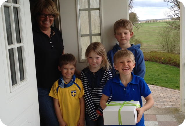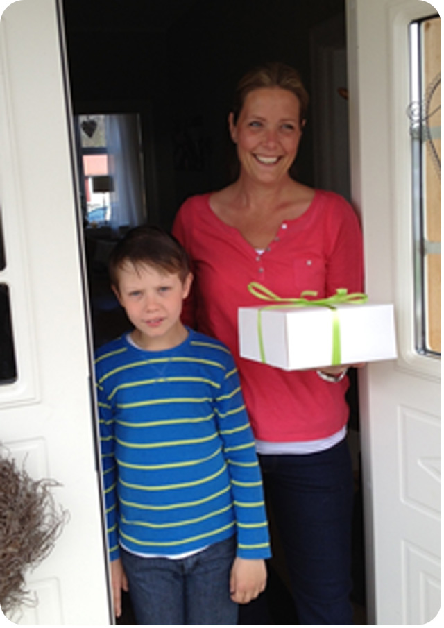 På bilderna är tre av de familjer som vann tårta