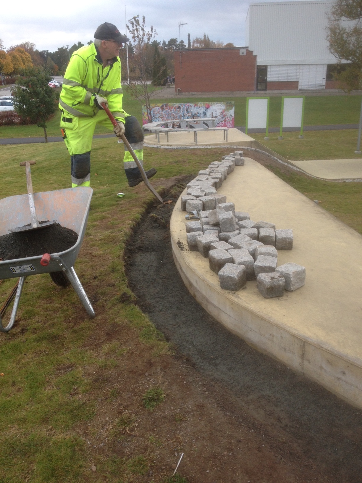 Var föriktig när du åker eller vistas i parken om det sitter uppe platsband för avskiljning eller om du ser att det precis är lagat och tex. cementen behöver hinna torka.